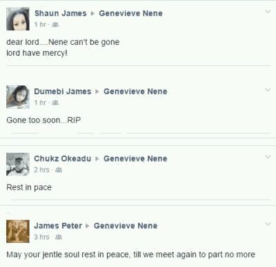 Fast-rising Nollywood actress,Genevieve Nene has been reported dead.
