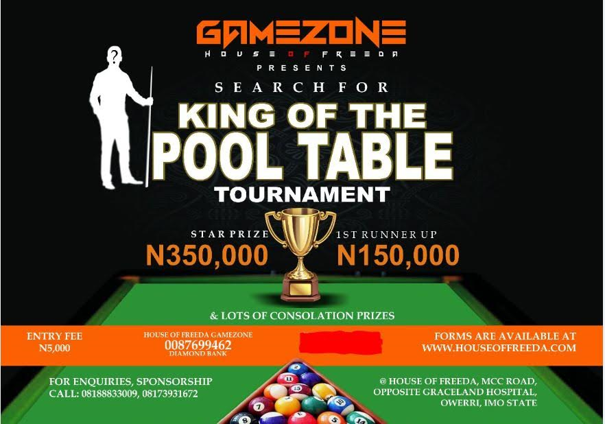 The King of the Pool Table tournament holds at House of Freeda, MCC road, opposite Graceland Hospital, Owerri, Imo