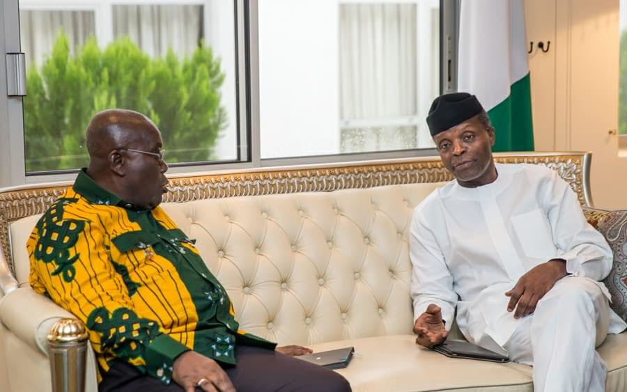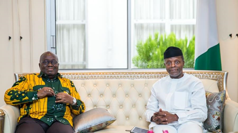 Acting President Yemi Osinbajo, received the President of Ghana, Nana Akufo-Addo at the Presidential Villa in Abuja Sunday,