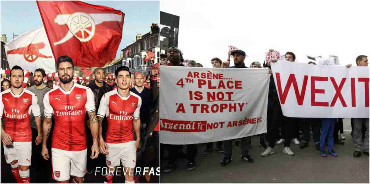 “Arsene 4th place is not a trophy, Arsenal FC not Arsene FC”, “Wenger out”