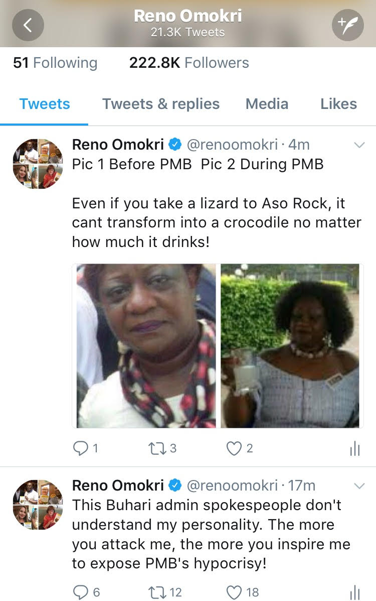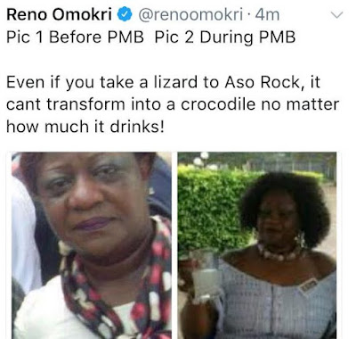 Reno Omokri has replied after presidential aide Laurette Onochie mocked him earlier with a before and after photo claiming he was part of the looters