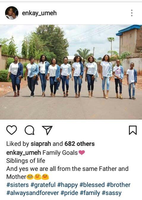 Lawyer and makeup artist Umeh Enkay posted this family photo which include her sisters and their only brother. They are all