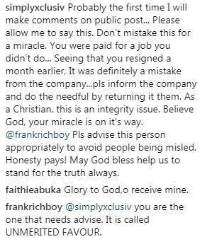 An Instagram user dropped a comment under the testimony advising the man to return the money as he didn’t deserve it. He