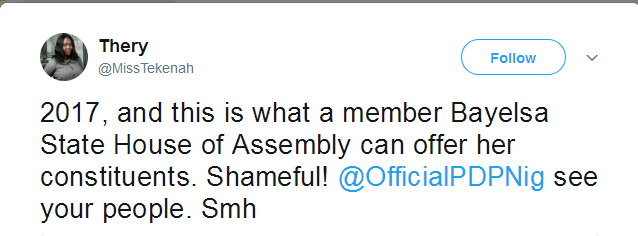 A lady has taken to her Twitter page to call