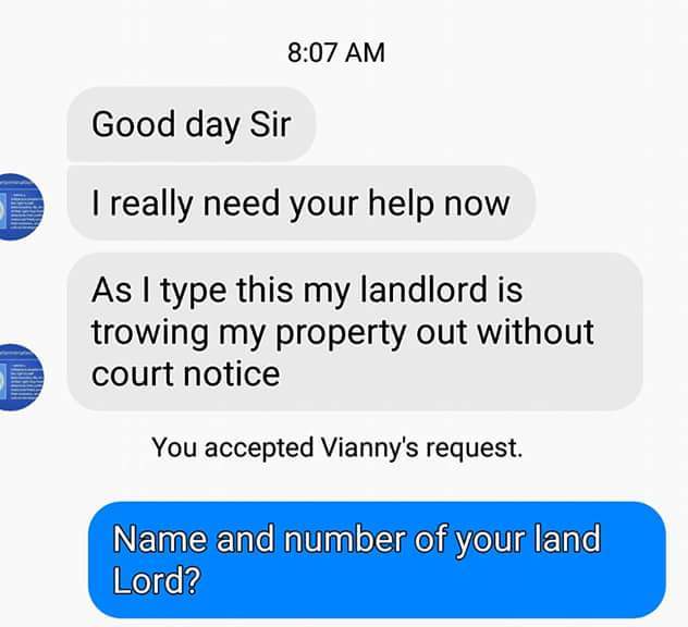 A man has cried out to Lawyer and activist, Emeka Ugwuonye, claiming that his landlord simply identified as Ibrahim threw him and family out without prior eviction notice. See screenshots below for more info…