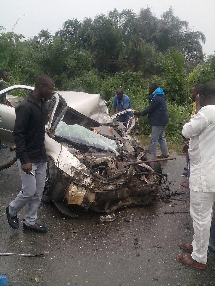 Jennifer Vwarie Umukoro and her family were involved in an accident which left their car completely damaged, but thankfully no life was lost.