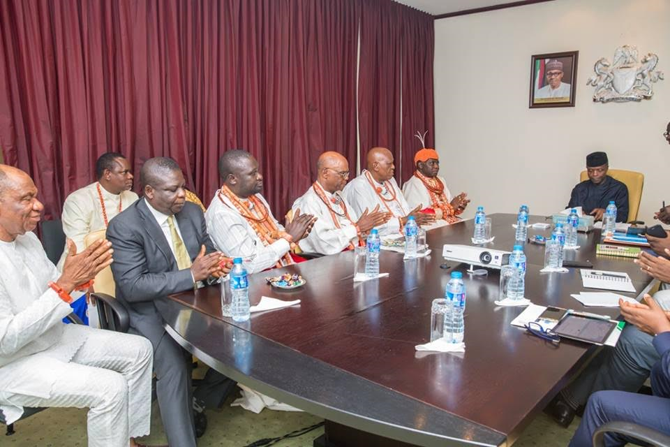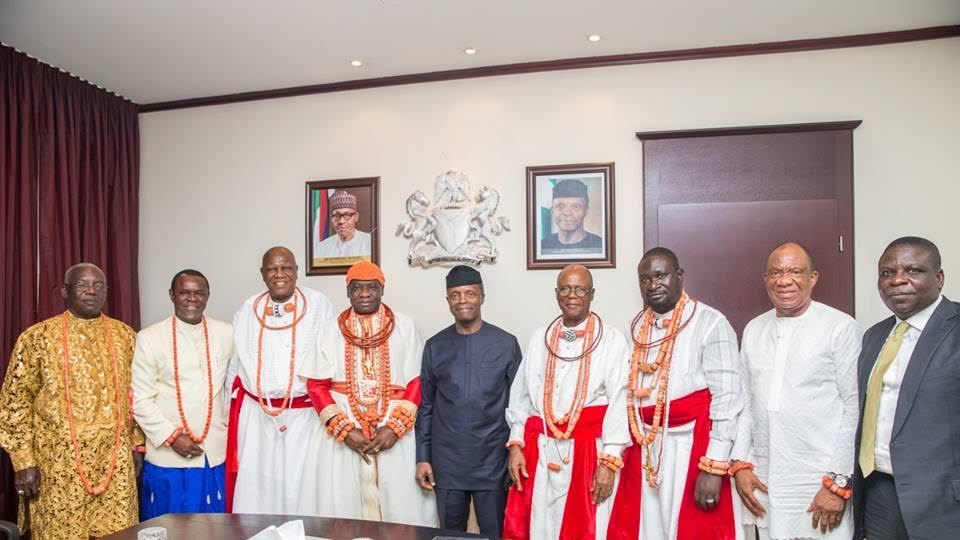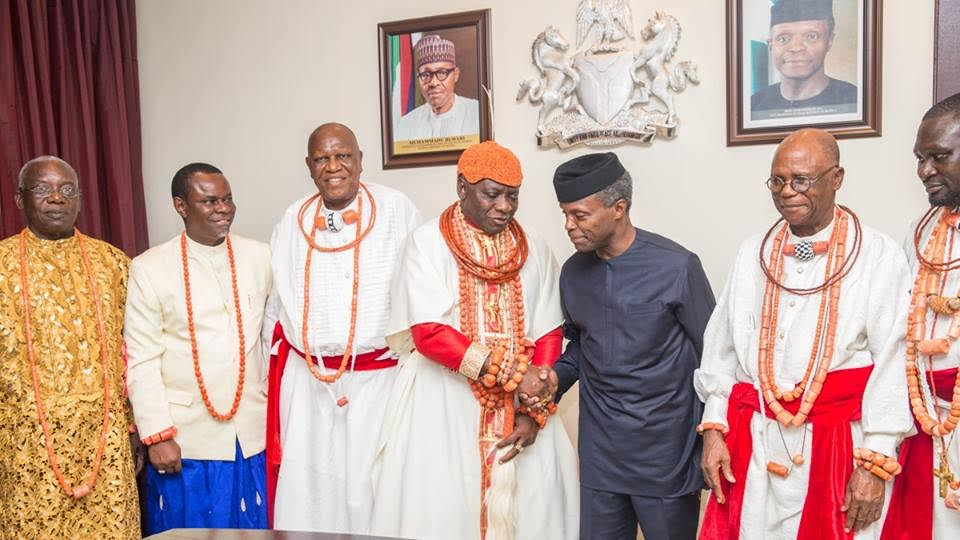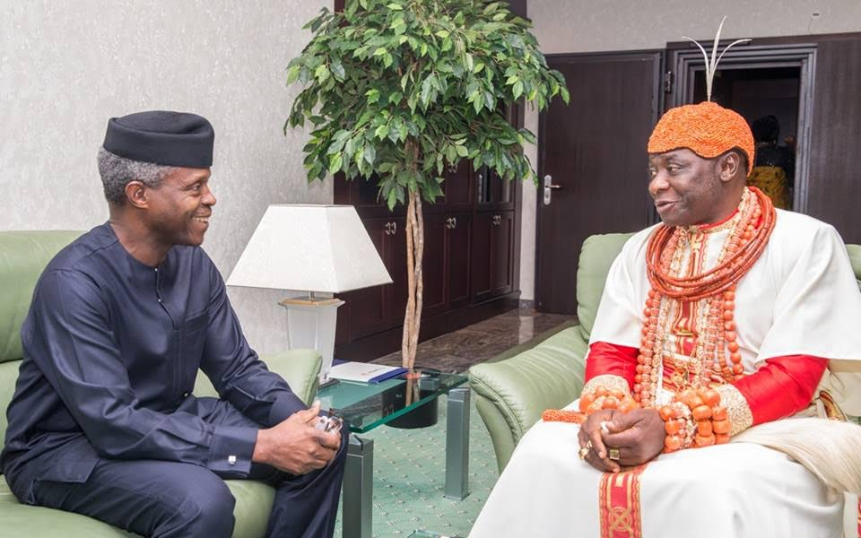 Acting President Yemi Osinbajo received the Olu of Warri, His Royal Majesty, Ogiame