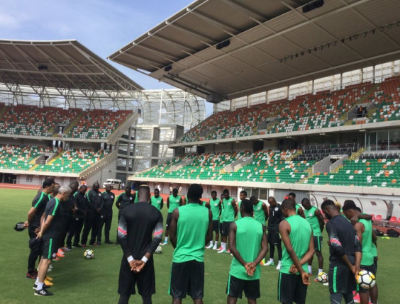 Super Eagles players who are currently in Akwa Ibom state training for their upcoming Africa’s Cup of NAtion qualifying