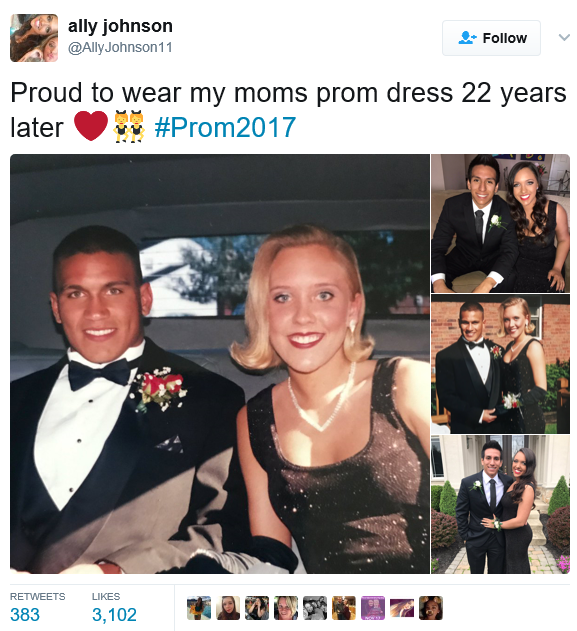 twitter page. High school senior Ally Johnson wore the same dress her mum, Lori Johnson, wore to her own to her senior prom in 1995.