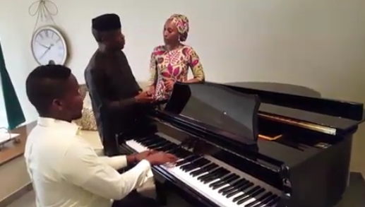 A little get-together was organized for Vice president Yemi Osinbajo who turned 60 years old today at the villa. He cut his birthday cake with his wife Dolapo and also sang the Christian song, Aka Akaya, with the