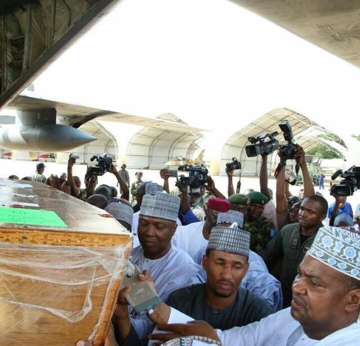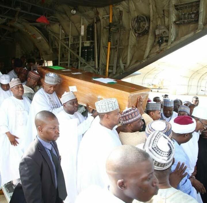 The body of late Maitama Sule who died on July 3 arrived Air Force Base in Kano Tuesday evening. Governor Umar Ganduje