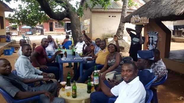 Some people at the PDP Secretariats Asaba, Delta State are pictured dancing as the