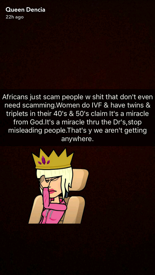 Dencia is of the opinion that Africans like to mislead others a lot by not disclosing the