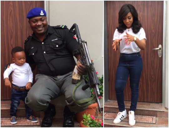 Tonto Dikeh and her son, King Andre stepped out in white and denim yesterday.