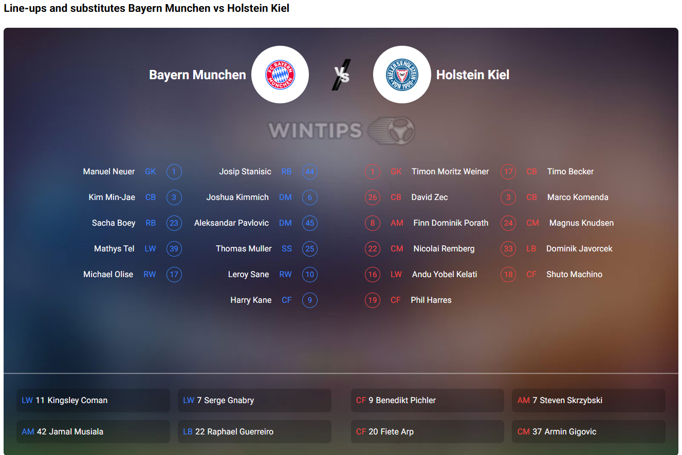 Predicted Lineups for Bayern Munich vs Holstein Kiel