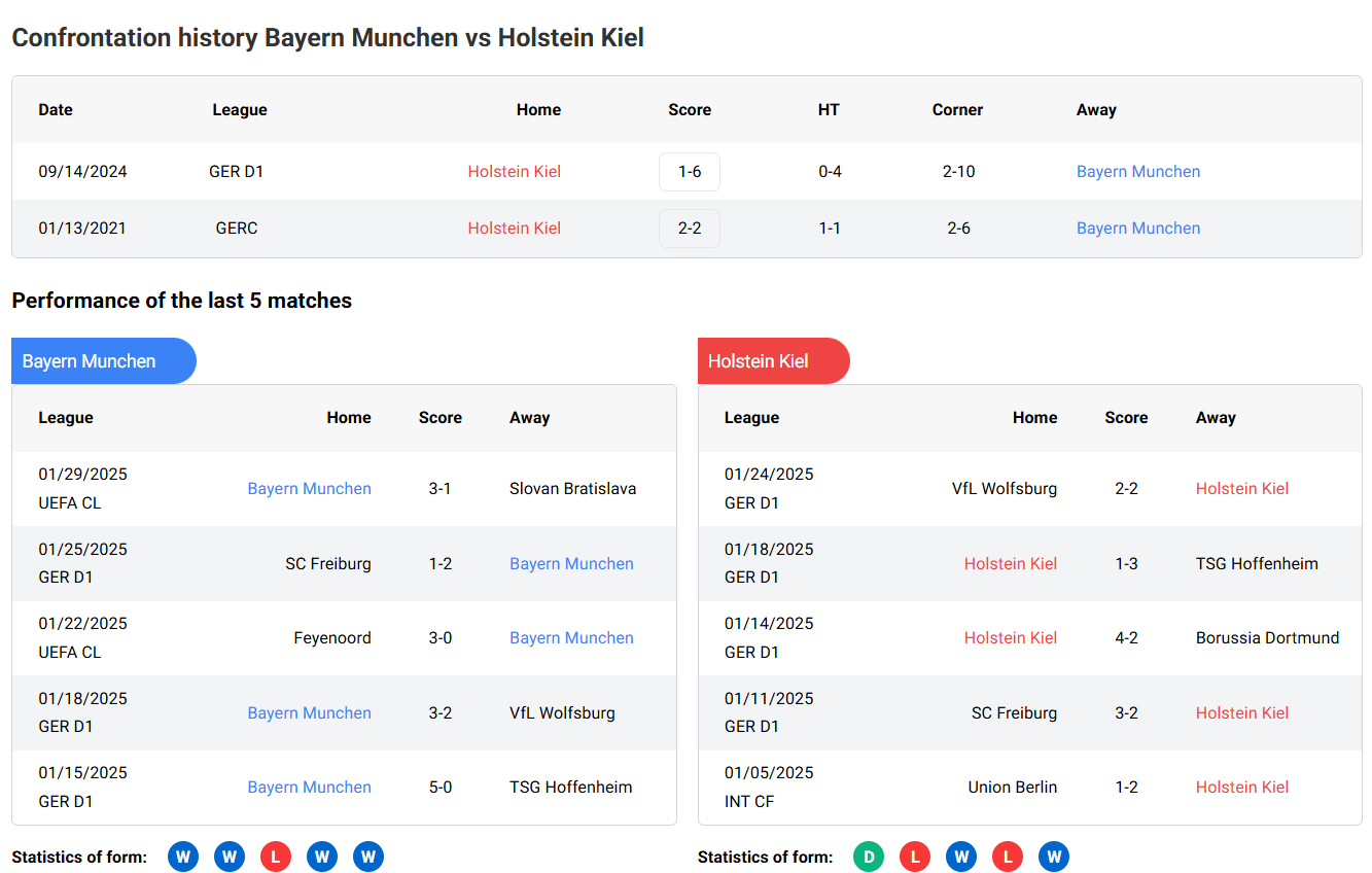 Head-to-Head Results for Bayern Munich vs Holstein Kiel