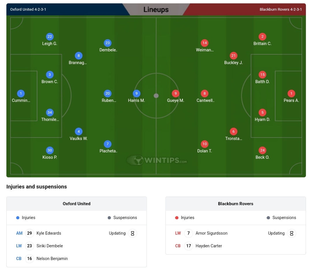 Predicted Lineups for Oxford United vs Blackburn Rovers match